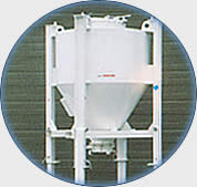 Zur Befüllung und Wiegung der Kleinbehälter bieten wir die komplette Umschlagseinheit, bestehend z.B. aus Vorrats-Silo, Förderschnecke mit Verladegarnitur, Wiegeeinrichtung an.